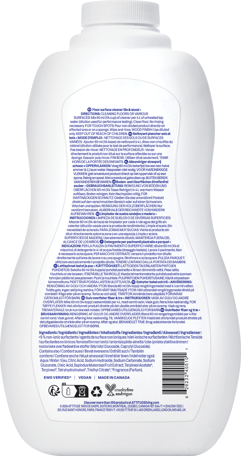 Attitude Tile & Hardwood Floor Cleaner, 1,04 l